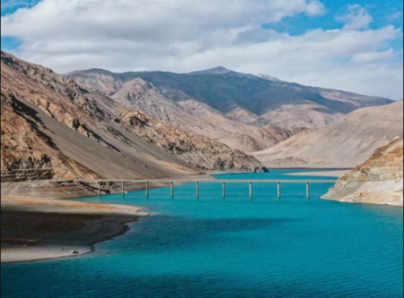 班迪爾藍(lán)湖,也被稱為下坂地水庫、坎兒洋龍池。地處帕米爾高原的塔什庫爾干縣班迪爾鄉(xiāng),海拔約3050米。水域面積約為3平方公里。水深:約為30米。班迪爾藍(lán)湖的湖水呈現(xiàn)出深邃的藍(lán)色,這是由于湖水中含有高濃度的礦物質(zhì)。湖泊周圍是昆侖山脈的裸露巖層,與湖泊的藍(lán)色形成了鮮明的對比,給人一種冰冷而深邃的美感。游客